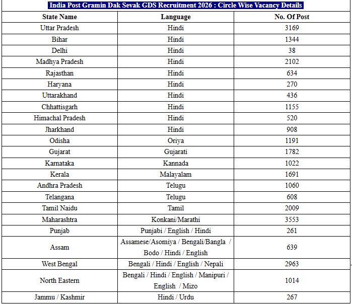 Department of Post, India Post has released a notification on official website for the recruitment of India Post Gramin Dak Seva GDS Post. This recruitment is for 28,636 positions. India Post Application Form has started on 31 January 2026 & the candidates can apply till the 14 February 2026. The Minimum age required is 18 Years & The Maximum Age Is 40 Years as on 01 January 2026. Candidates must check the complete details for India Post GDS Recruitment 2026 which has given below.